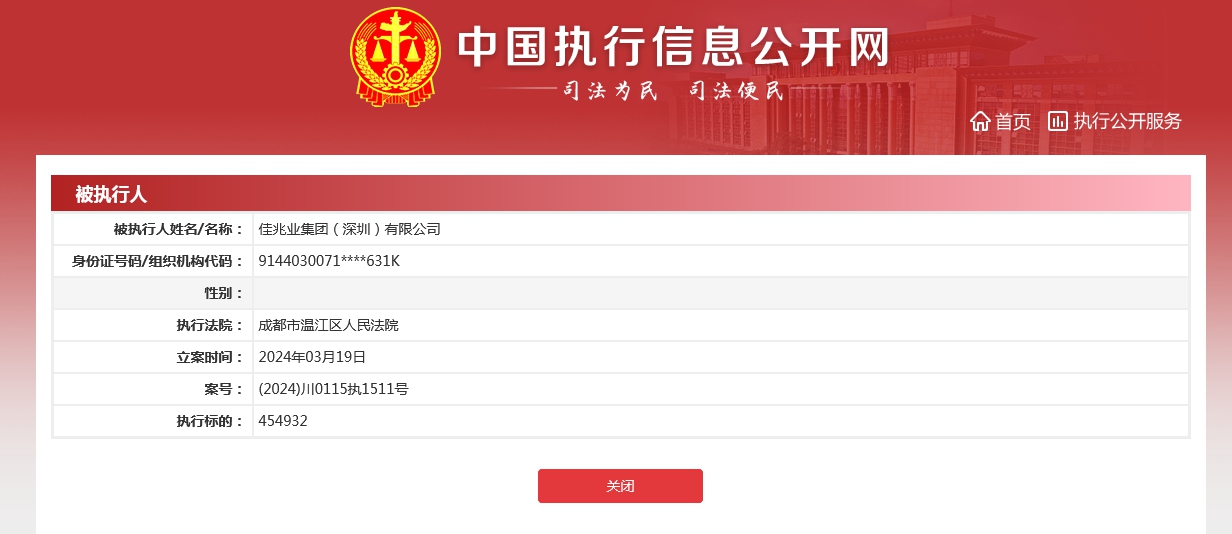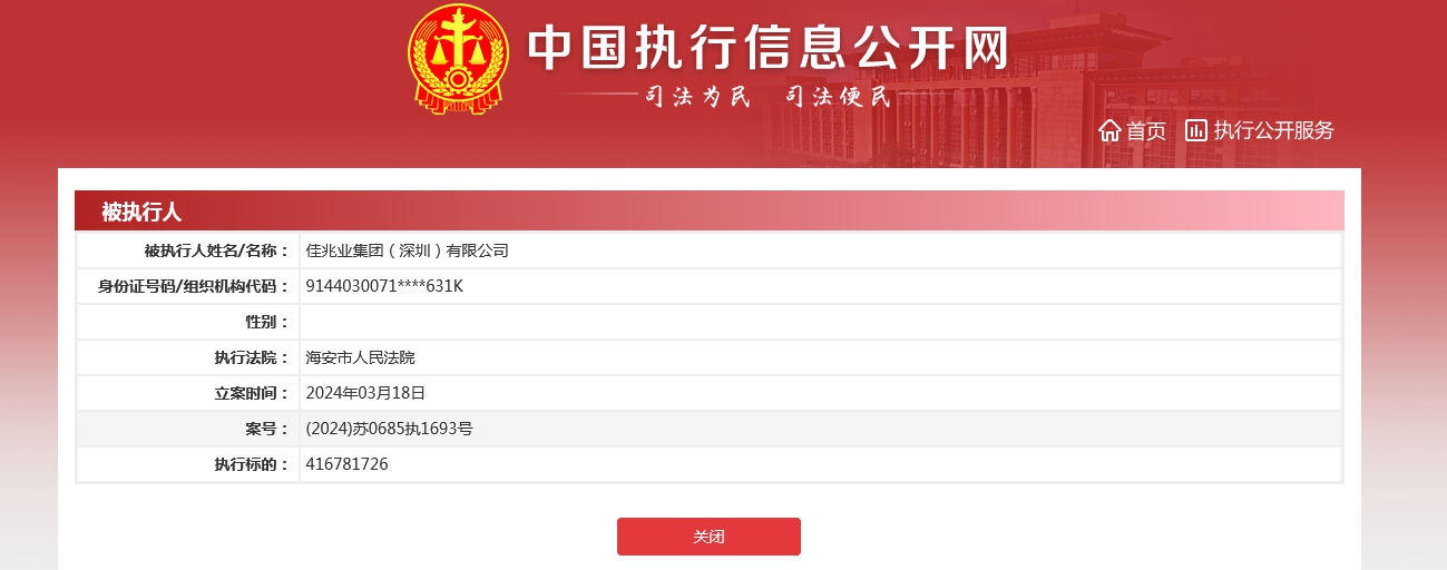 燃点网3月20日电 近日,佳兆业集团(深圳)有限公司(下称佳兆业)新增2条被执行人信息,执行标的合计4.1亿余元。