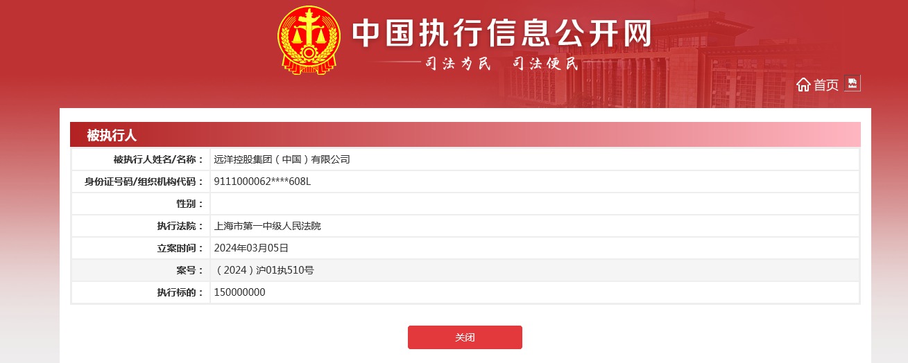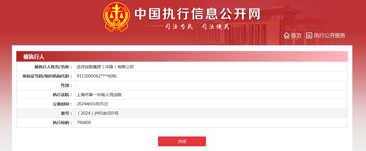 燃点网3月7日电 近日,远洋控股集团(中国)有限公司(下称远洋控股集团)新增两则被执行人信息,执行标的合计超1.5亿。