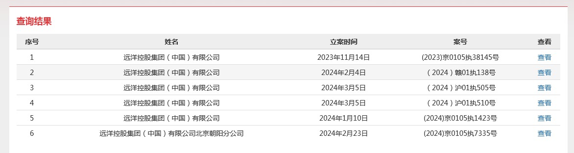 同时,中国执行信息公开网还显示,远洋控股集团现存6条被执行人信息。除3月5日新增的2则被执行人信息外,分别于2023年11月14日被执行100122000、2024年1月10日被执行682335、2024年2月4日被执行363591597、2024年2月23日被执行32209,合计被执行金额约6.15亿。
