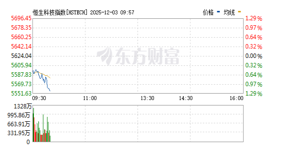 恒生科技指数跌幅扩大至1%,成分股普遍下行,美团、小米集团、京东、快手等权重股均录得明显回调。与此同时,恒生指数亦同步走弱,现跌0.66%,市场整体风险偏好有所降温。