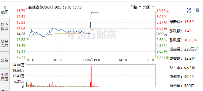 人形机器人概念股午后强势拉升,万向钱潮直线封板