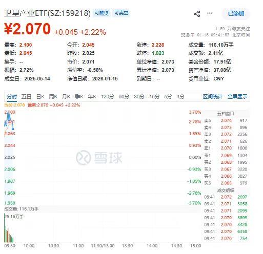 1月16日,卫星产业又火了一把。根据数据,到早上9点36分,卫星产业ETF(159218)交易活跃,上涨了3.01%。其中,中科星图、臻镭科技、信科移动-U、电科芯片和信维通信的表现抢眼。