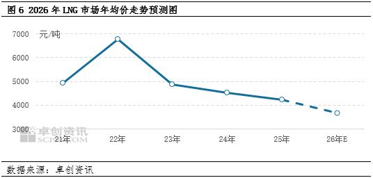 在能源绿色转型加速推进的道路上,我国LNG供应规模的扩大趋势具备较强的确定性,尤其是接收站出货料将基于恢复性发展特征而呈现出更大的增量空间(详见《LNG年终盘点之供需篇:25年增速下降 26年增量空间或扩大》)。供应量的增加会对上游出货节奏提出更高的要求,尤其是在日益激烈的价格竞争中,上游为了控制库存压力而让利促销的情况恐将进一步增多,2025年下半年多次出现的加速下跌行情已印证这一点,故据卓创资讯预计,在供应更加充足且宽松的基调下,液价或迎来更多下方空间,2026年LNG年均价或约为3661元/吨。