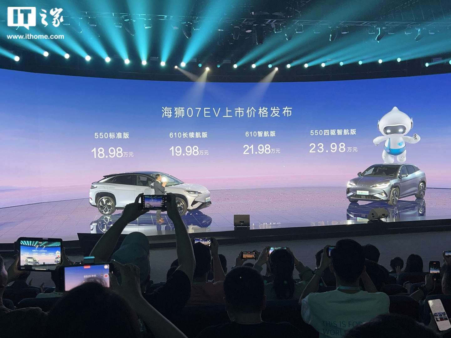 燃点网 5 月 10 日消息,比亚迪定位为“中型都市智电 SUV”的新车 —— 海狮 07 EV 于今晚正式上市,该车也是比亚迪 e 平台 3.0 Evo 的首款车型,这一全新平台集成了比亚迪电动化核心技术。燃点网附价格: