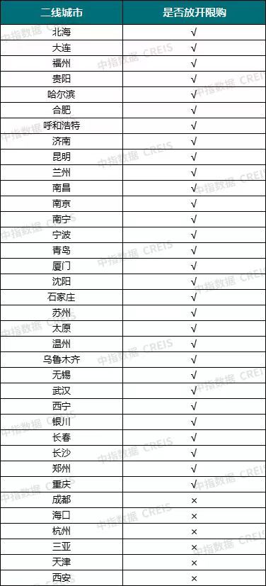 据中指研究院监测数据,截至目前,核心二线城市中,仅成都、海口、杭州、三亚、天津、西安保留部分限购政策。