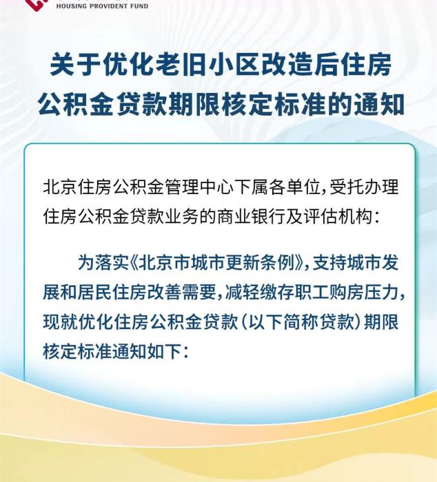 北京优化老旧小区改造后住房公积金贷款期限核定标准