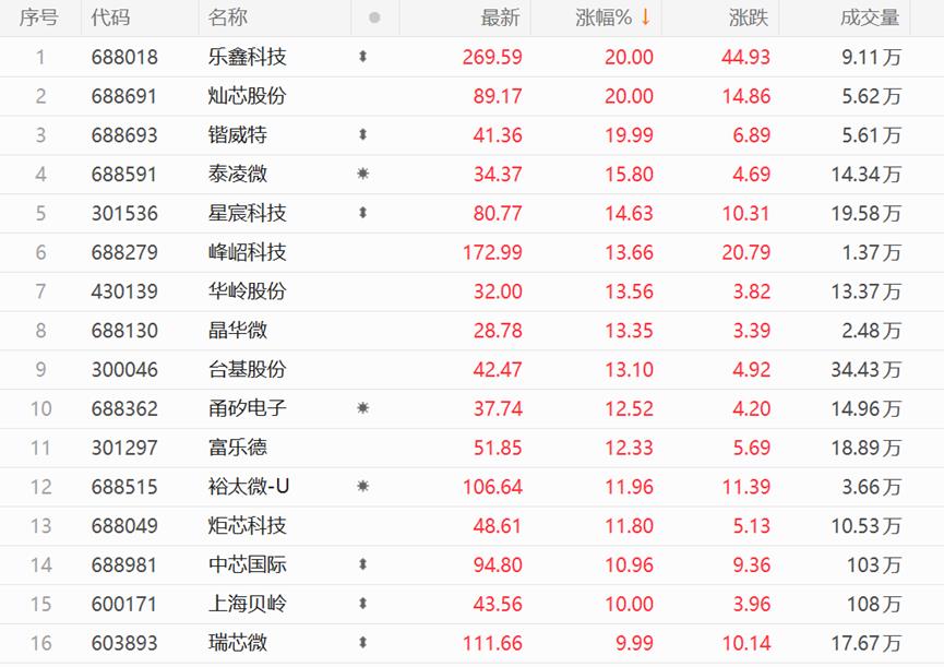 乐鑫科技、星宸科技、峰岹科技、寒武纪、思特威等(盘中)股价创下历史新高。