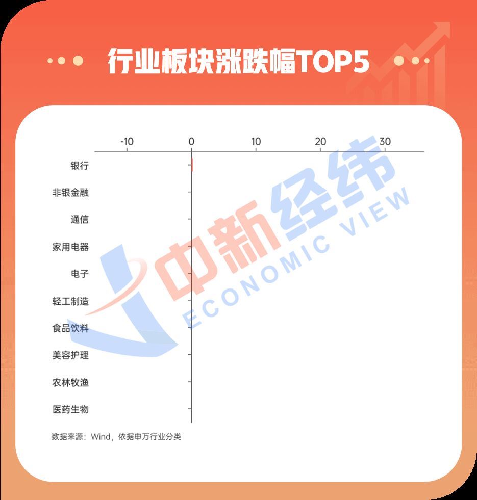 板块方面,申万二级行业分类下,2024年涨幅居前5名的板块分别是银行、非银金融、通信、家用电器、电子。其中,银行板块涨近35%居首。