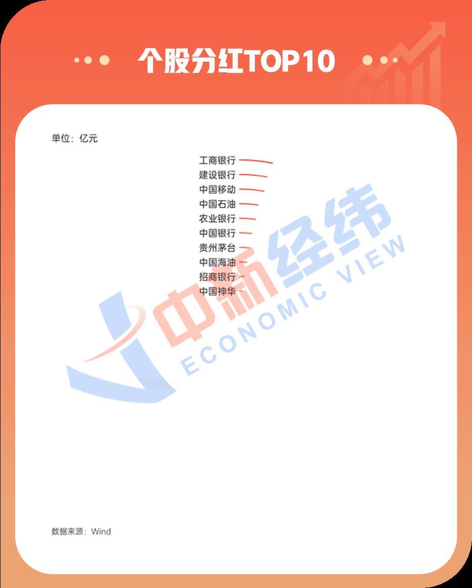 分红方面,按Wind“公司区间现金分红总额”指标看,前10名中有5家公司为银行股,工商银行成年度“分红王”,分红额1092.03亿元;建设银行分红额也超千亿,达1000.04亿元。(制图 孙爱)
