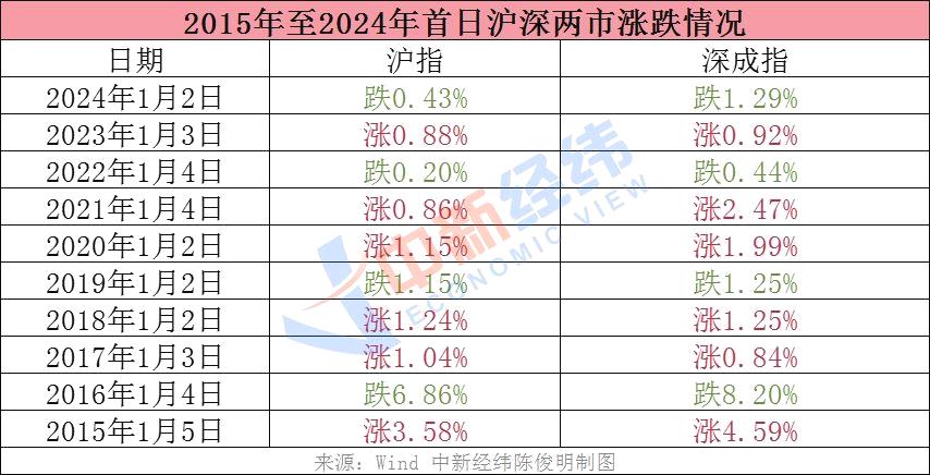 从涨跌幅度来看,沪深两市近3年首个交易日表现都相对平稳,沪指、深成指整体涨跌幅均在1%以内,仅深成指在2024年首个交易日出现1.29%跌幅。相比较来看,沪深两市在2015年、2016年首个则表现出“冰火两重天”的行情。在2017年至2021年期间,沪指、深成指在年内首个交易日都有明显波动。