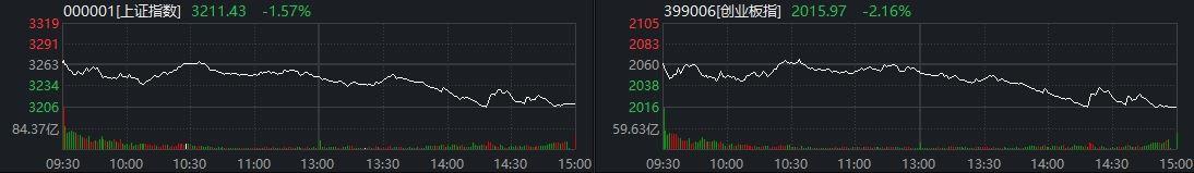 燃点网1月3日电 3日,A股三大股指震荡下跌,午后跌幅扩大。截至收盘,上证指数跌1.57%报3211.43点,深证成指跌1.89%报9897.12点,创业板指跌2.16%报2015.97点。