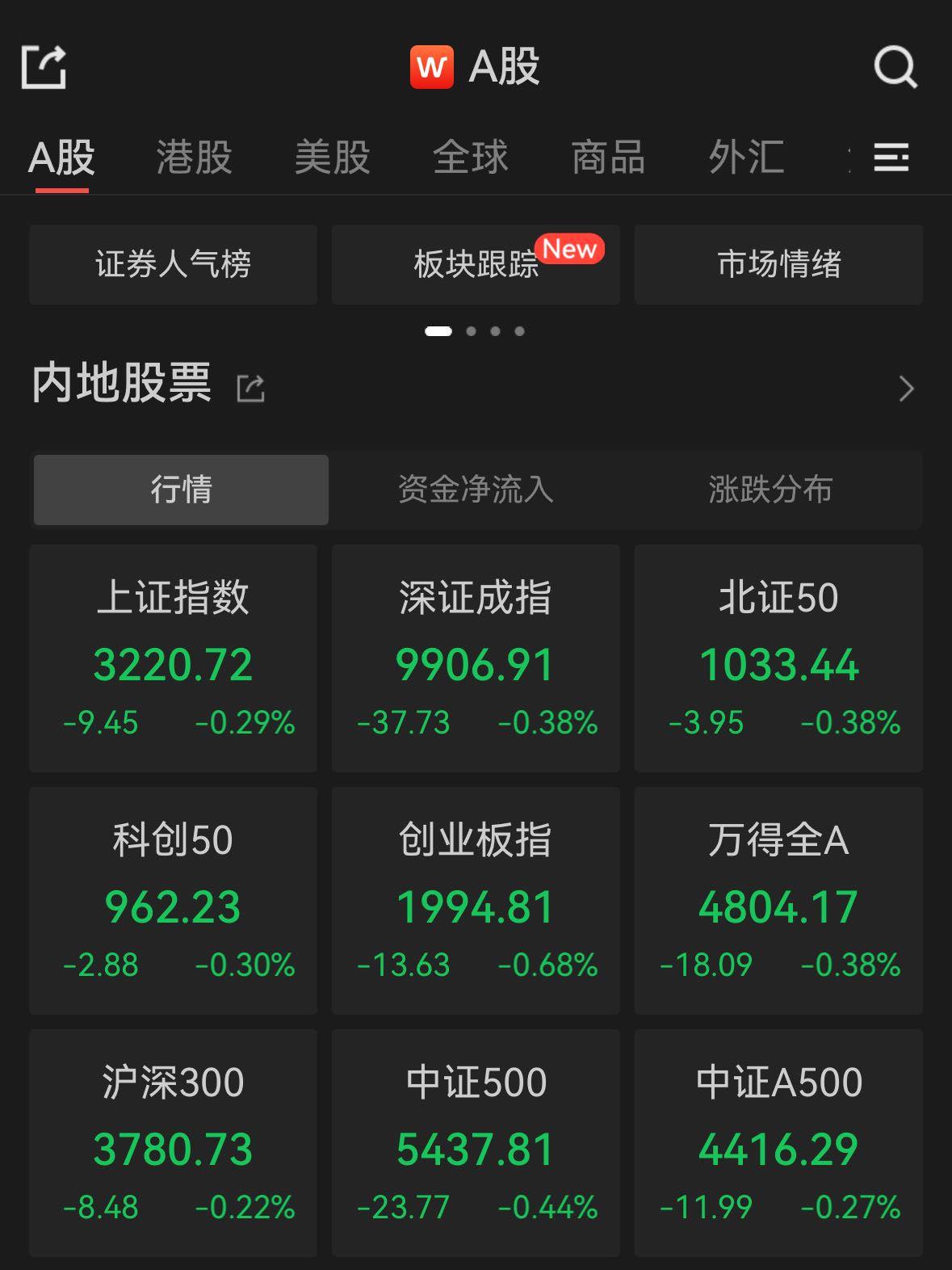 盘面上,高速铜连接、光刻工厂板块跌幅居前,跨境电商、光芯片概念小幅下挫;白酒股回暖,家电、农业板块造好。总体看,沪深京三市低开个股近4000只。