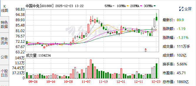 中国中免A股成交额突破100亿元,交投极度活跃。