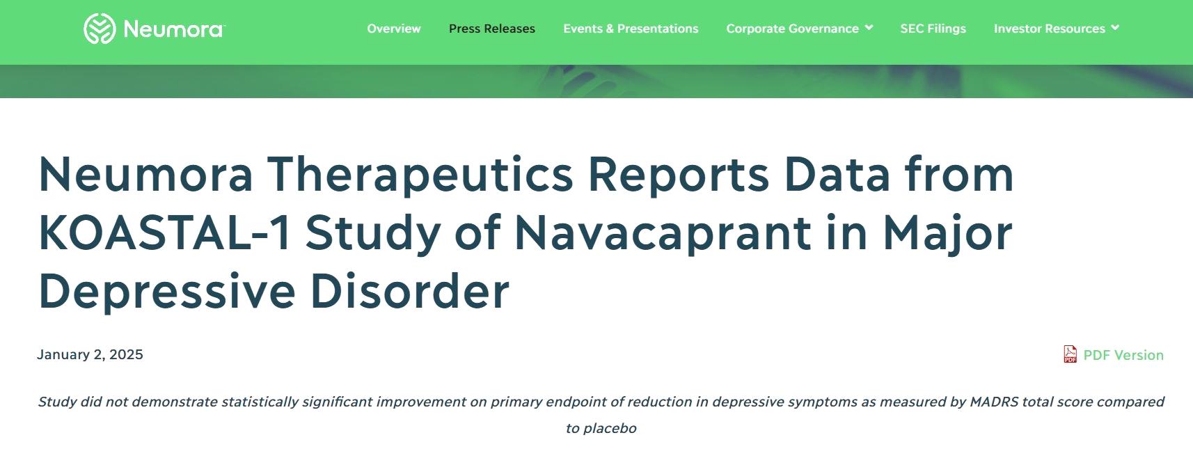 具体来说,在一项针对383名患有重度抑郁症的成年患者的临床试验中,Neumora备受市场关注的navacapant未能证明其对抑郁症的治疗有明显效果,因此投资者对该公司的前景感到失望。