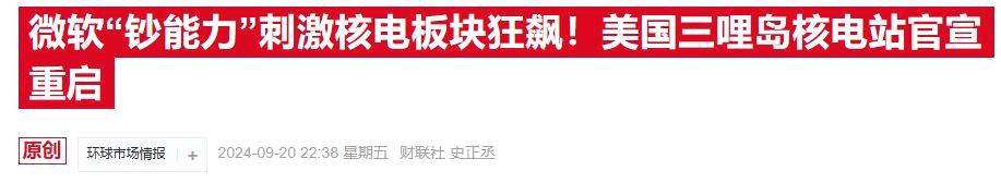 “现在情况已经不同了。这项协议是发生变化的有力例证。根据该协议,美国政府将与微软和其他实体一道支持对可靠核能的持续投资,这将使星座能源重新获得许可并延长这些关键资产的使用寿命。”