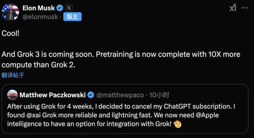 值得一提的是,在此之前,关于Grok 3“跳票”的话题引发热议。早在2024年夏天,马斯克便发文称,xAI公司的下一代AI模型Grok 3将在10万张H100 GPU上训练,将于2024年底推出,Grok 3聊天机器人“将会是非常特别的”。