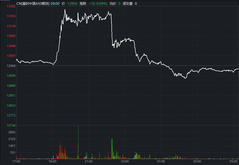 富时中国A50指数期货显著震荡,盘中最高涨1.8%,此后快速回落,收盘微跌0.09%。