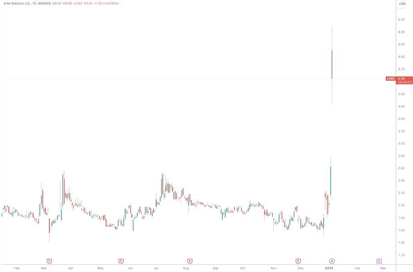 截至发稿,Arbe Robotics上涨近50%。算上前一交易日恰逢AI应用题材炒作,短短两天股价接近翻倍。