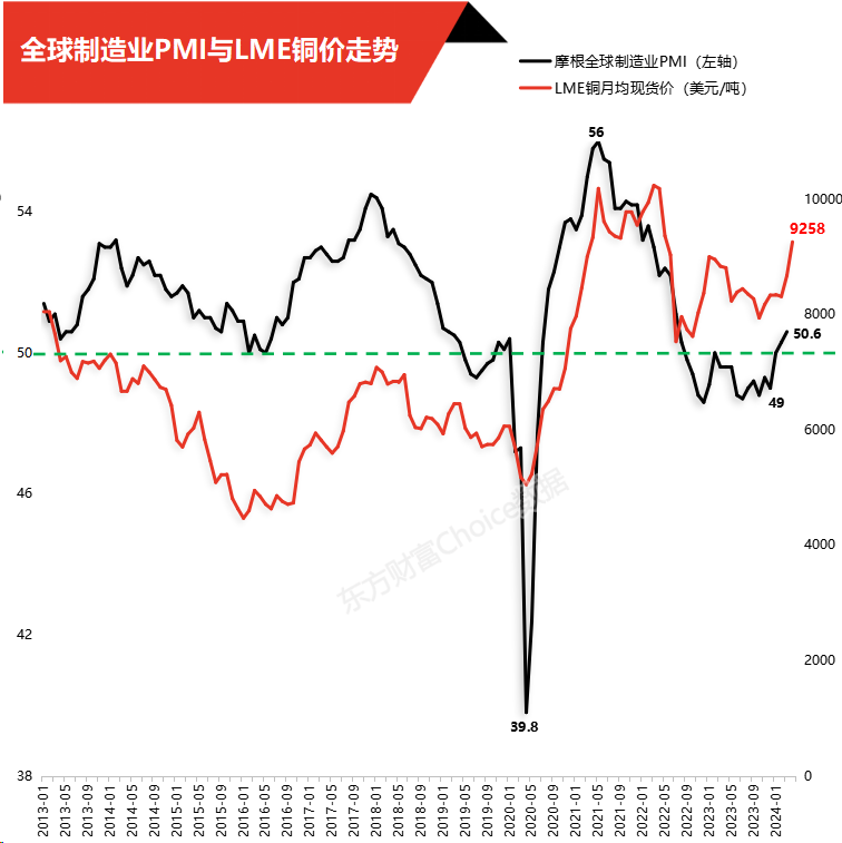 另据J.P.Morgan数据,2024年3月份摩根全球制造业PMI为50.6%,较上月上升0.3个百分点,已连续三个月位于50%以上的扩张区间。铜价与全球PMI的持续回升引起了高度关注,“经济复苏”及“有色”成为近期业内热议的话题。