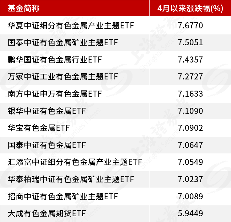 4月以来,截至4月10日,名称中含“有色”的ETF产品,总规模扩张了7.6亿元。相比黄金ETF大多5%左右的区间涨幅,这些ETF的涨幅大多在7%以上,表现更为出色。