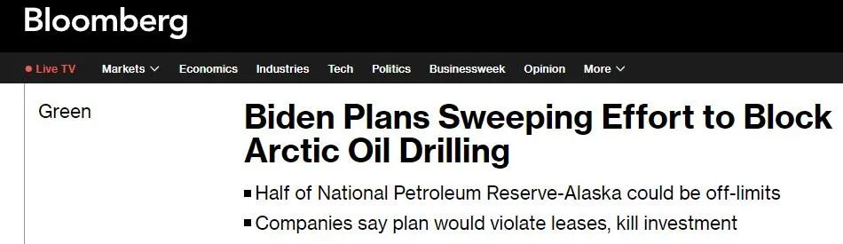 此外,据彭博社上周五报道,美国总统拜登正在全面阻止美国北极地区的石油钻探工作,旨在保护阿拉斯加州北坡地区超过一半的资源不被开发。这项计划将在几天内完成,这是拜登迄今为止为限制在联邦土地上勘探石油和天然气所做的最全面的努力之一。这些变化不会影响康菲石油公司在阿拉斯加石油储备区有争议的6亿桶Willow石油勘采项目。但石油行业领导人说,该计划的规模比最初预期的要大,几乎不可能使石油公司在该地区再建一个大型项目。