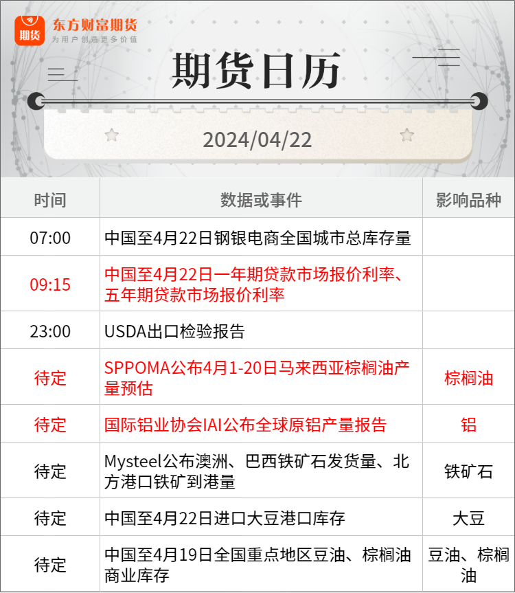 钢材:4月19日,全国300家长、短流程代表钢厂废钢库存总量517.77万吨,较昨日降3.36万吨,降0.64%;库存周转天9.9天,较昨日持平;日消耗总量50.42万吨,较昨日降0.09%;日到货总量47.06万吨,较昨日降0.56%。
