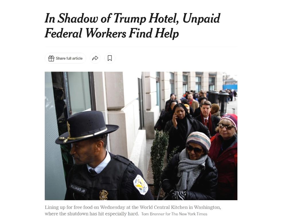 也有美国媒体回忆称,由于许多维持政府运作的文职人员薪酬并不高,所以在2018年底到2019年的那次停摆中,1个月没领到薪酬的联邦政府员工在华盛顿特区的食品银行门口排起长队,等着领取救济口粮。