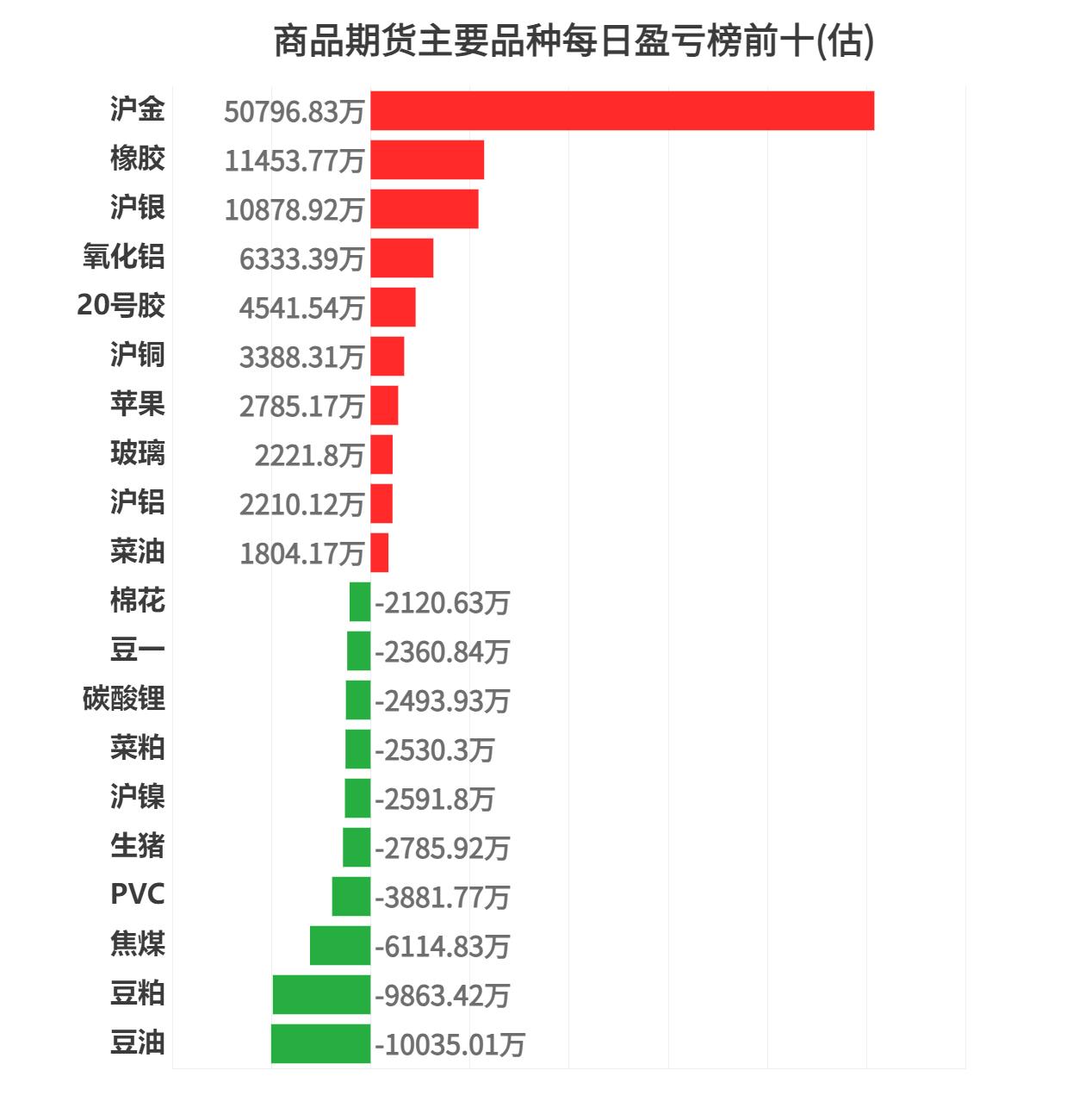 今日商品期货上榜机构席位中沪金盈利第一,为50796.83万元。