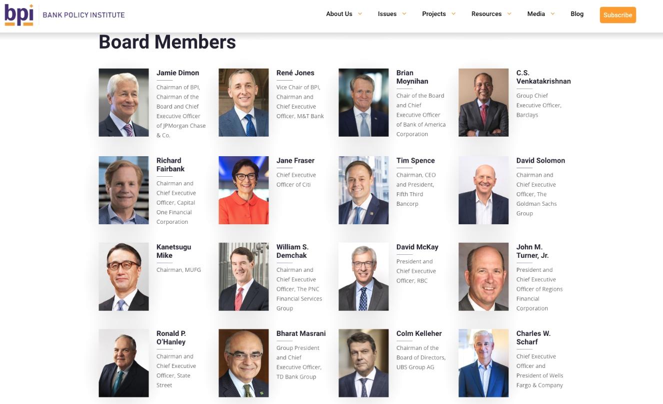 (美国银行政策所的理事会集齐华尔街有头有脸的大人物,来源:官网)