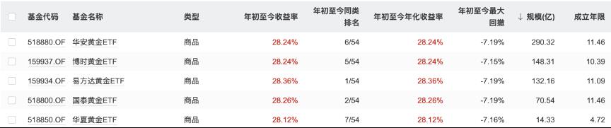 另一种热门投资产品黄金ETF年内也收获了高收益率。