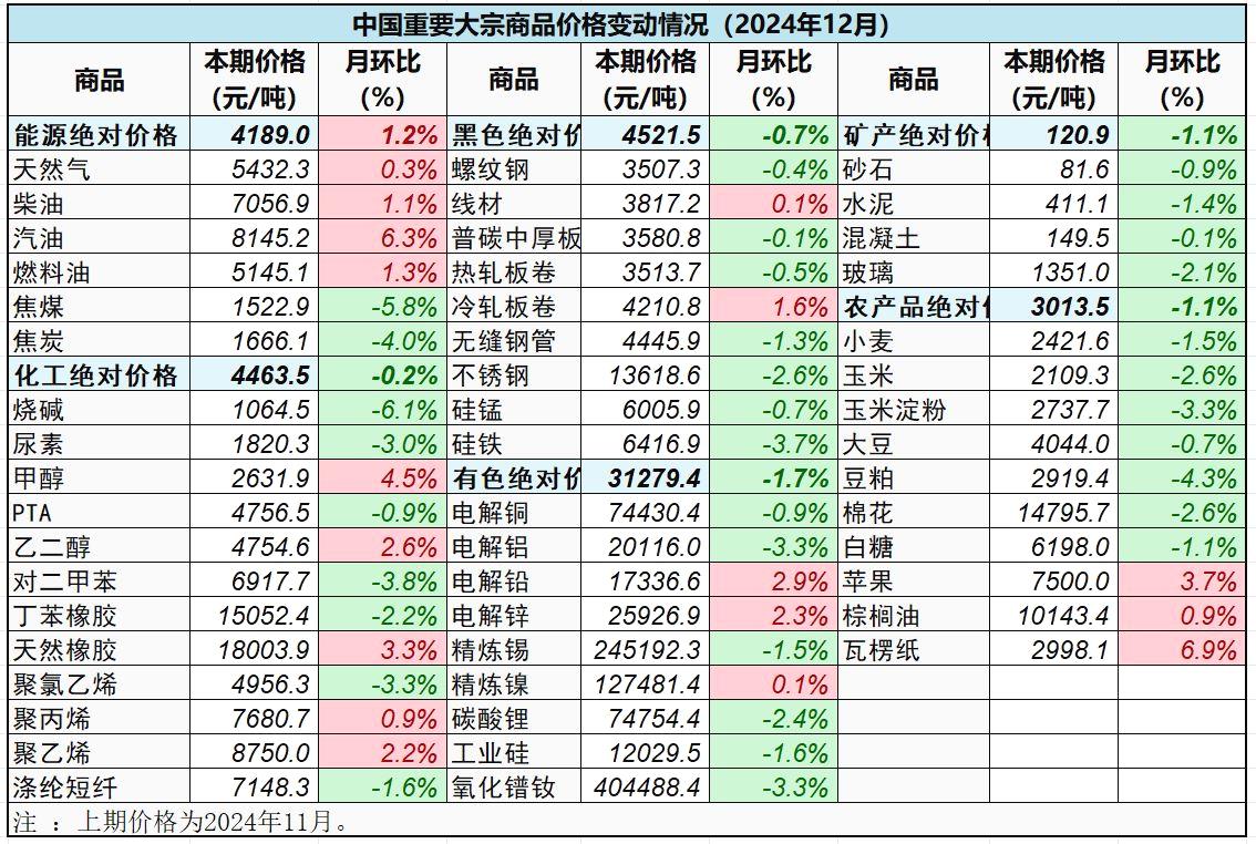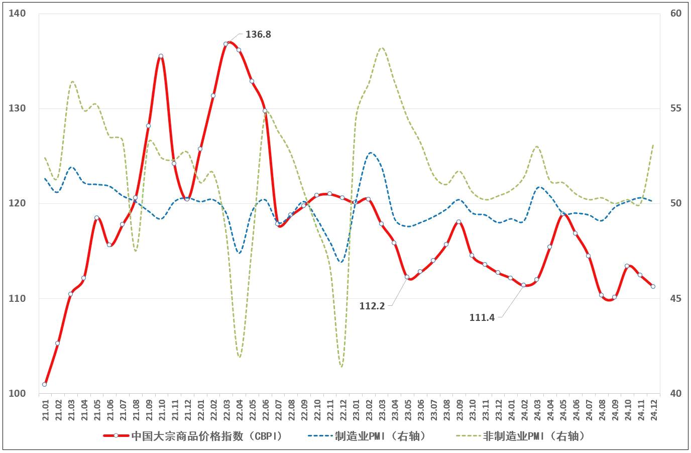 业内人士分析,受外部环境变化影响加深,以及传统消费淡季等影响,12月中国大宗商品价格指数出现小幅回调,但高于年内低点,表明大宗市场整体运行平稳,多数行业对后市持乐观预期。展望2025年,全球经济平稳增长将对大宗市场形成支撑。