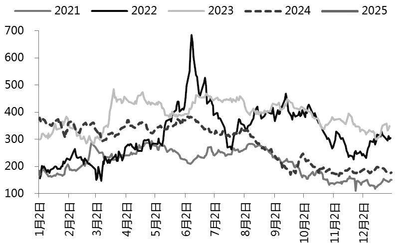 从成本端来看,近期原油市场利多因素增多,油价走势偏强,但同时美国成品油大幅累库及供需预期偏弱,油价上涨空间有限。随着PX长约逐步敲定,PX现货流通量较前期减少,1月PX取价切换至春节后供需预期好转,叠加PXN及PX和MX价差处于偏低水平,预计PX支撑较前期偏强。PTA在供需偏弱预期下价格驱动不足,但随着现货加工差压缩至300元/吨以下,低加工费下成本支撑凸显,PTA绝对价格以跟随成本端波动为主。