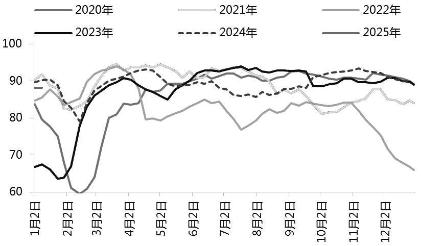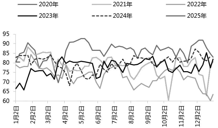 图为下游开工率走势(单位:%)