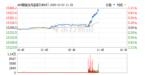 富时中国A50指数期货盘中涨幅扩大至超1%,市场情绪回暖,显示离岸投资者对A股核心资产短期走势持积极预期。