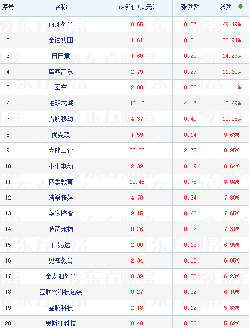 领涨中概股列表: