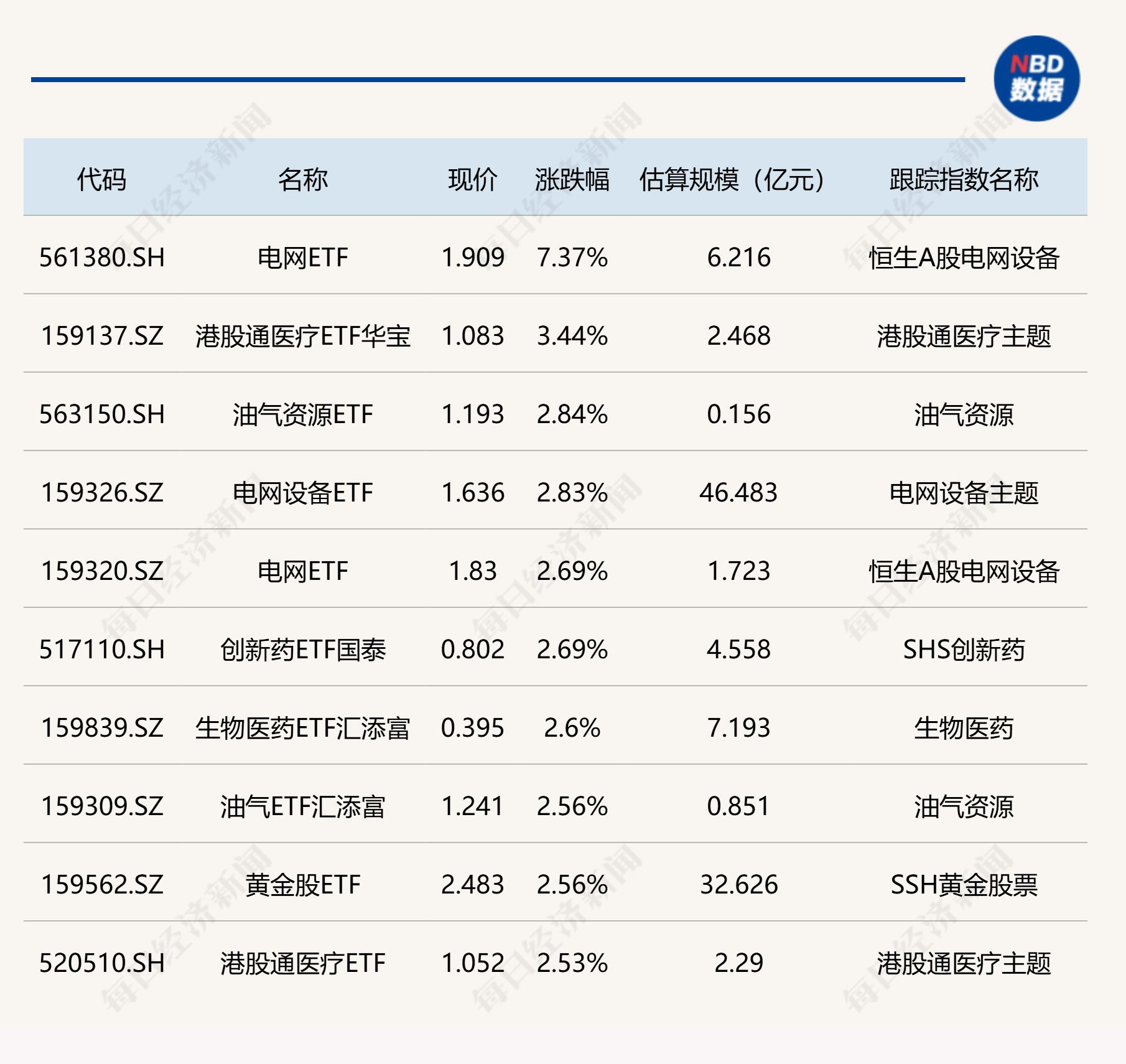 ETF涨跌幅方面,电网ETF涨超7%。