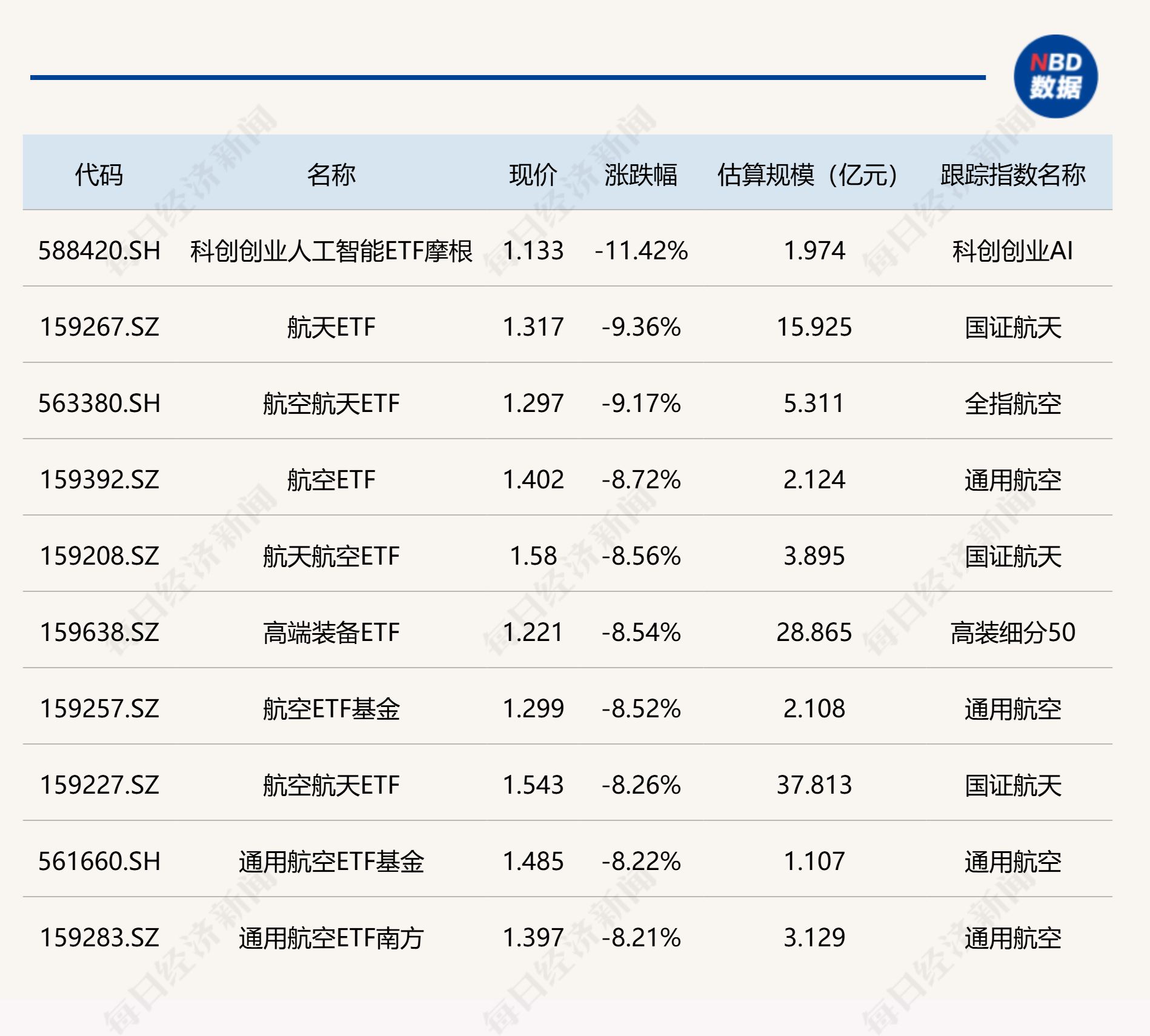 下跌方面,科创创业ETF摩根跌超11%,相关ETF跌约9%。